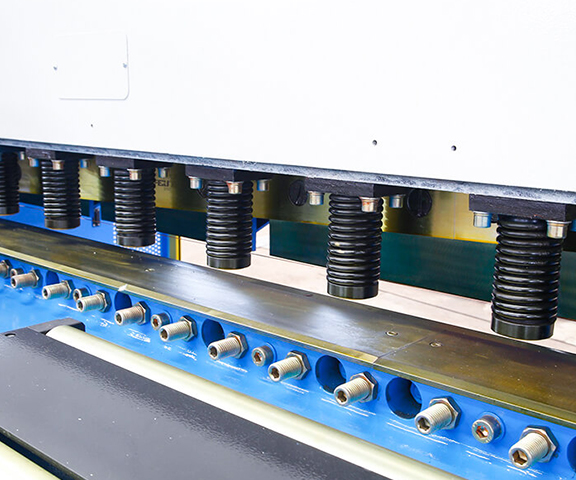 √機器相對于下刀片有垂直線性運動,確保被剪切的板材經歷最小的變形并保持準確的直線度。