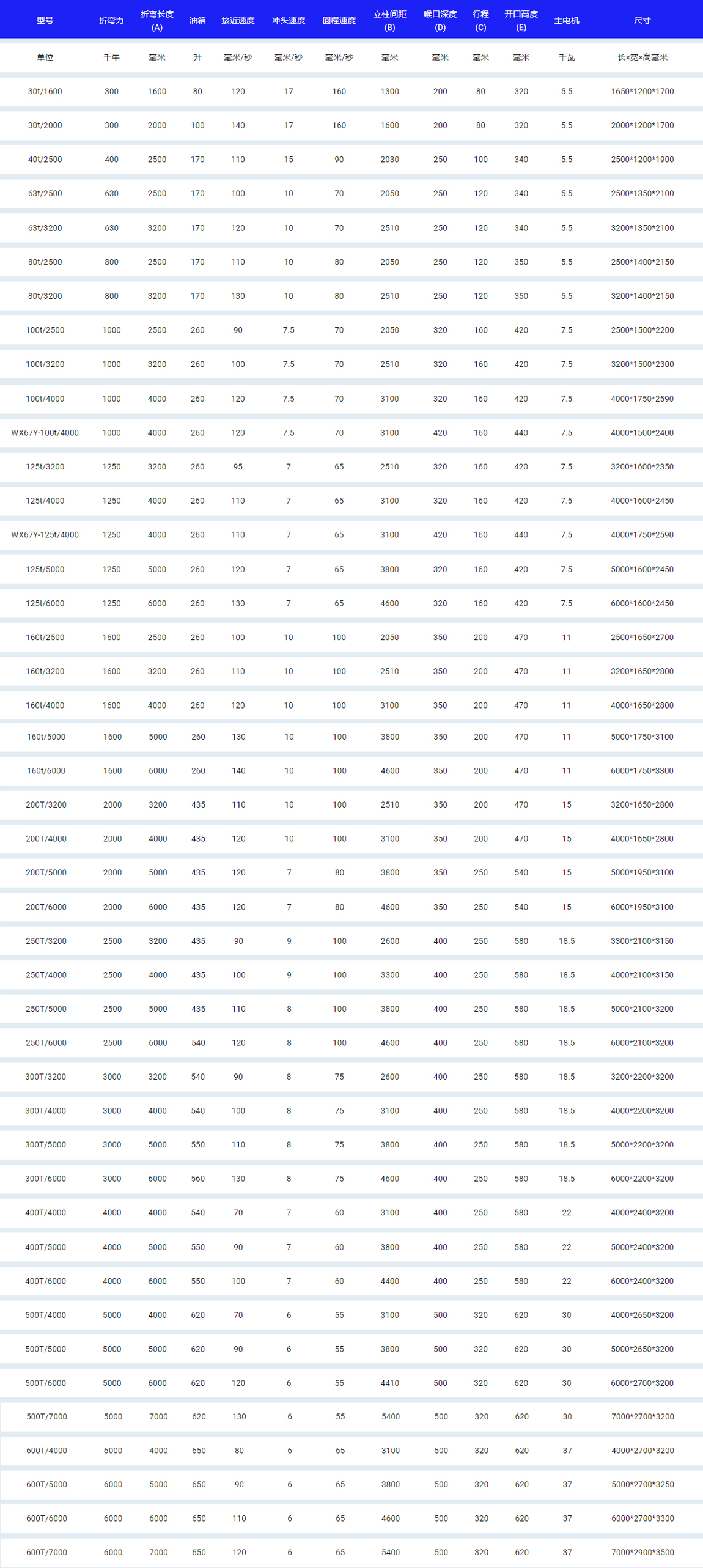 ?折彎能力:30噸 - 600噸
